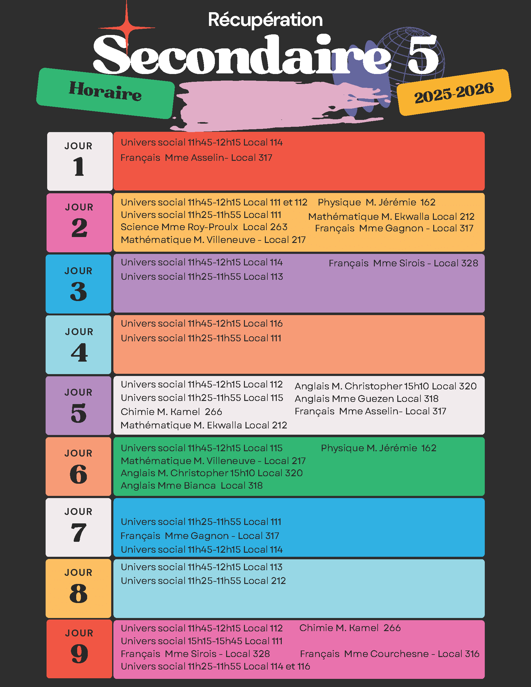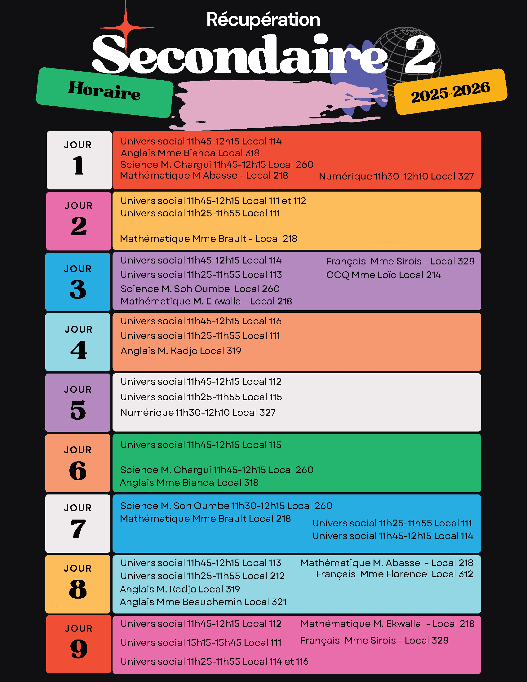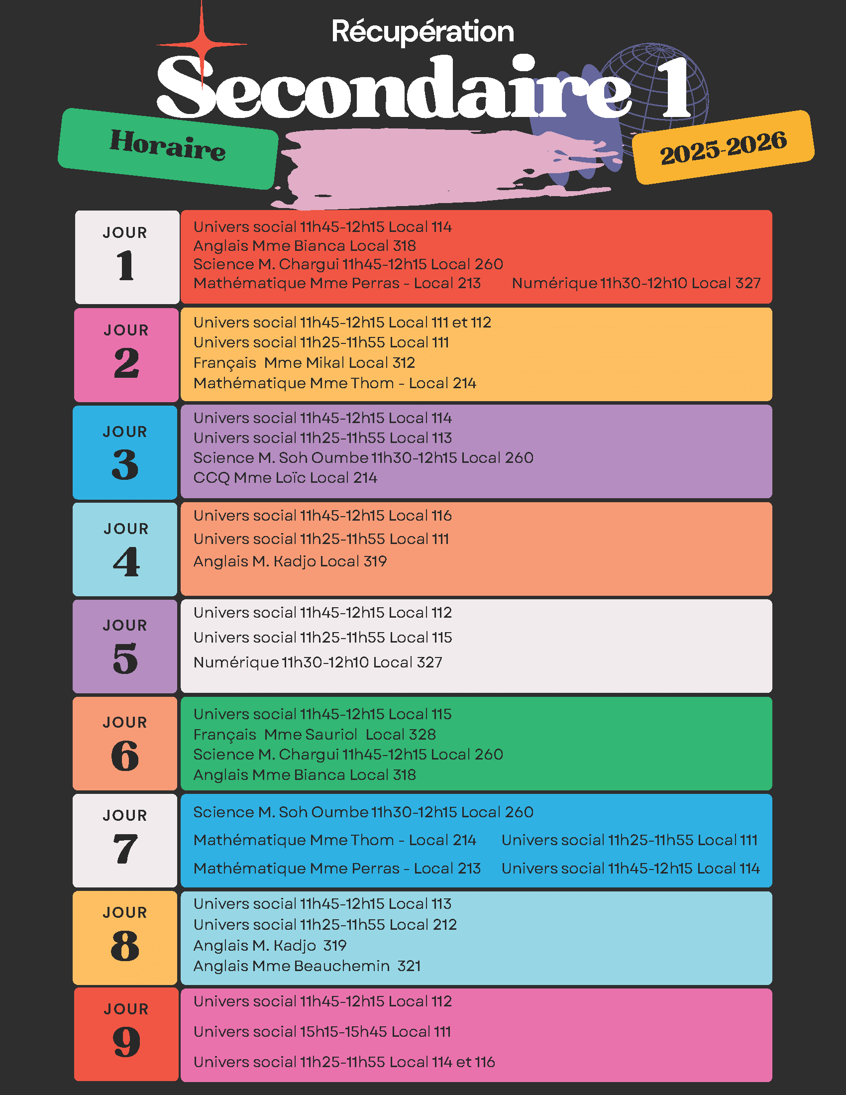 Horaire de l’école